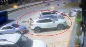 Hatay’da park halindeki aracı tek eliyle durdurarak faciayı önleyen Serap Mutlu’nun anları kaydedildi.